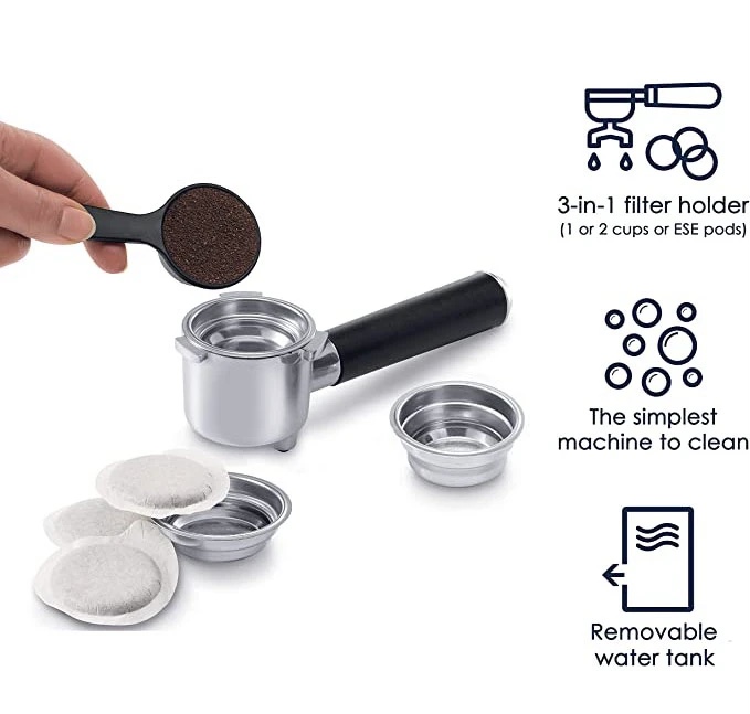 - بسکت مخصوص پد قهوه (E.S.E. Pod): برای استفاده از پدهای قهوه آماده.