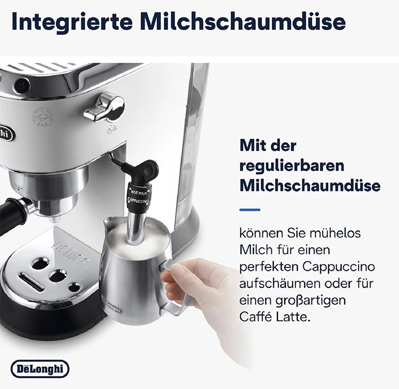 - نازل بخار قابل تنظیم: دلونگی EC685 با نازل بخار دستی به شما امکان تهیه فوم شیر و نوشیدنیهای شیری مانند کاپوچینو و لاته را میدهد.