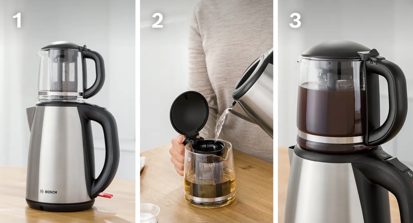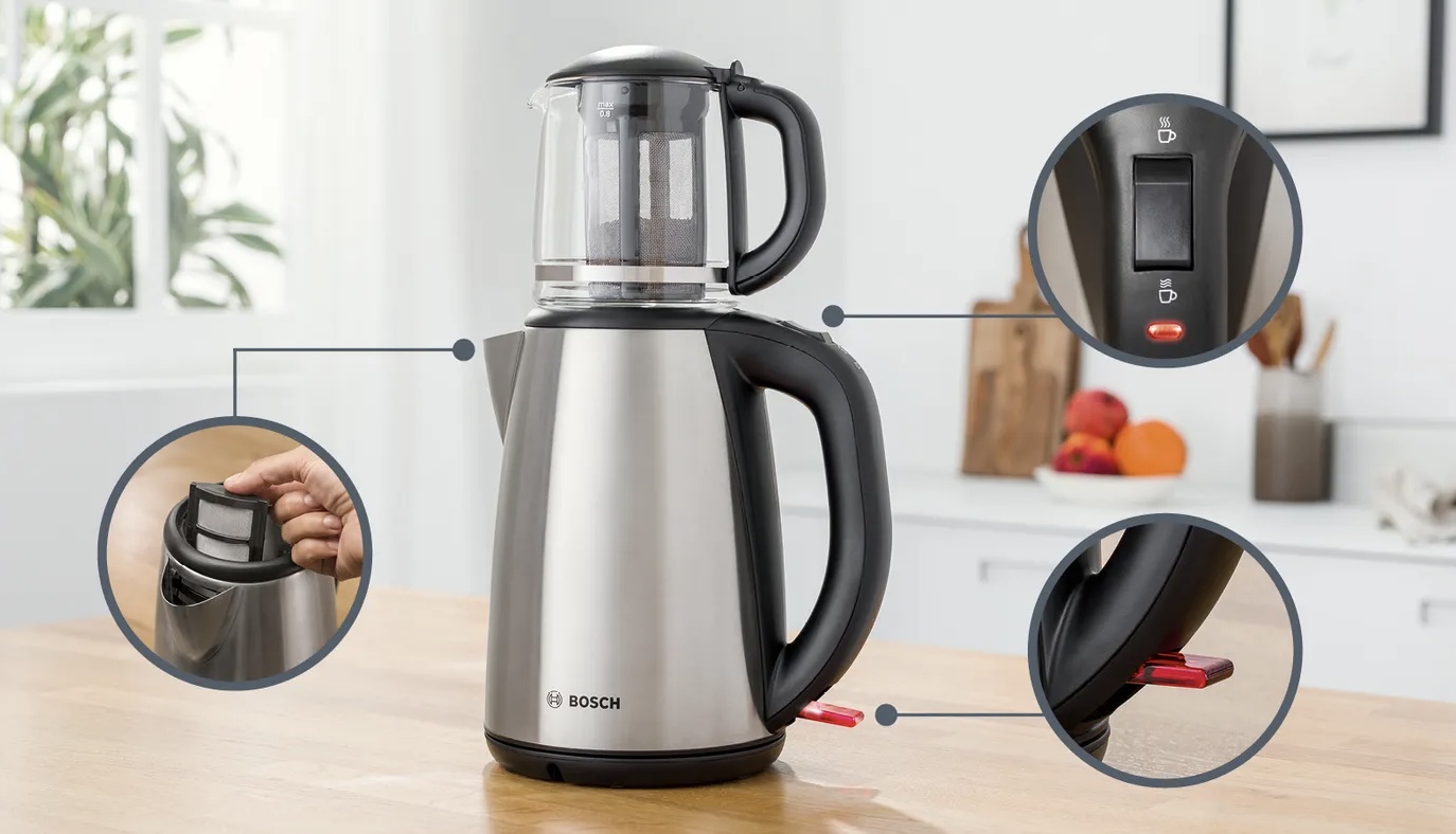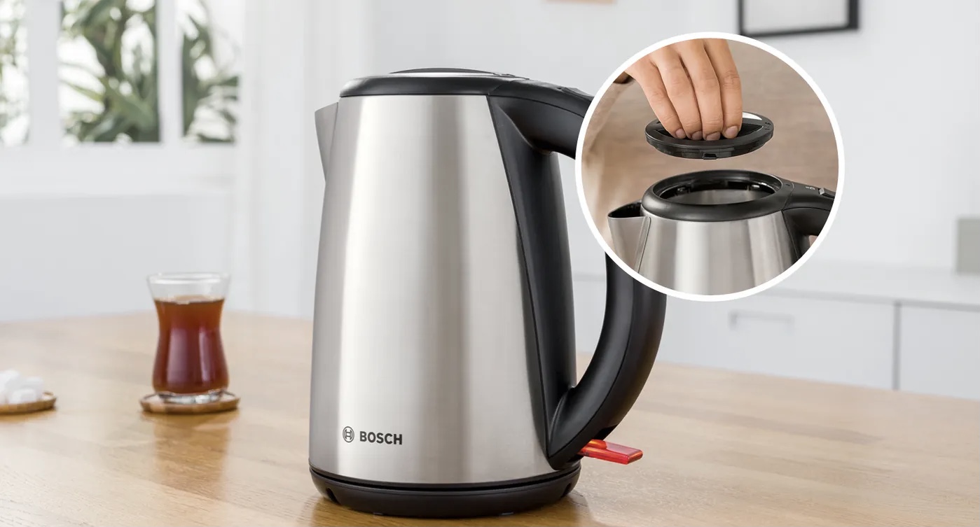 چای ساز بوش به فیلتر ضدرسوب قابل تعویض مجهز شده که از ورود املاح به داخل چای جلوگیری می کند که طعم چای را تغییر نمی دهد.