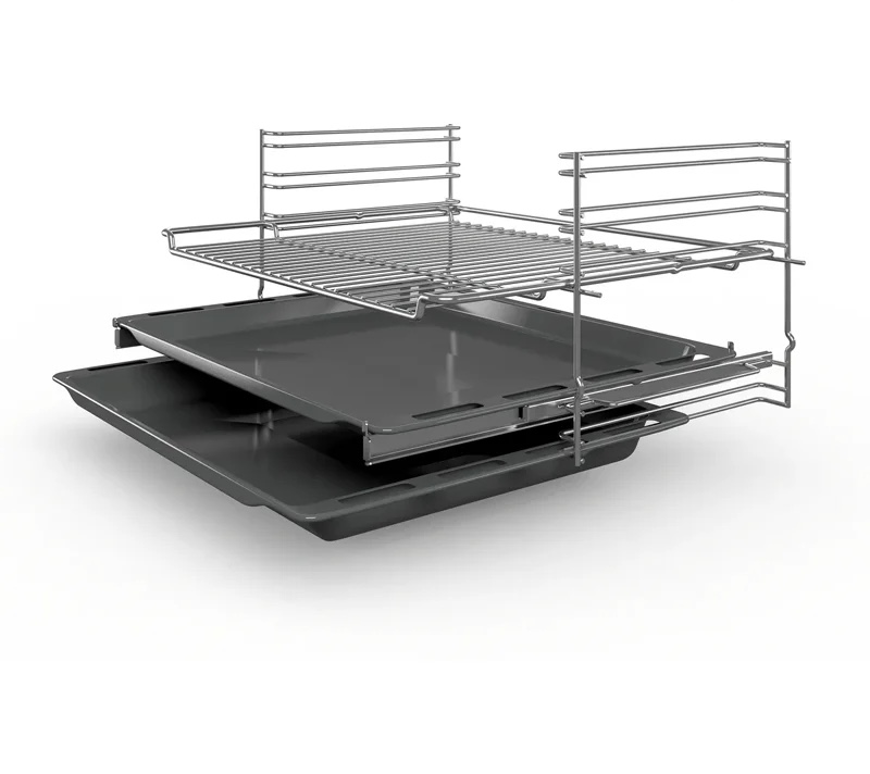 به همراه فر برقی توکار بوش مدل HBJ538ES0M یک تابه معمولی، توری ترکیبی و سینی شیرینی پزی ارائه می شود.