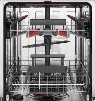 (ماشین ظرفشویی پیشرفته AEG با استفاده از بازوی اسپری ماهواره ای تمام گوشه های دستگاه را بدون نقطه کور تمیز می کند.)