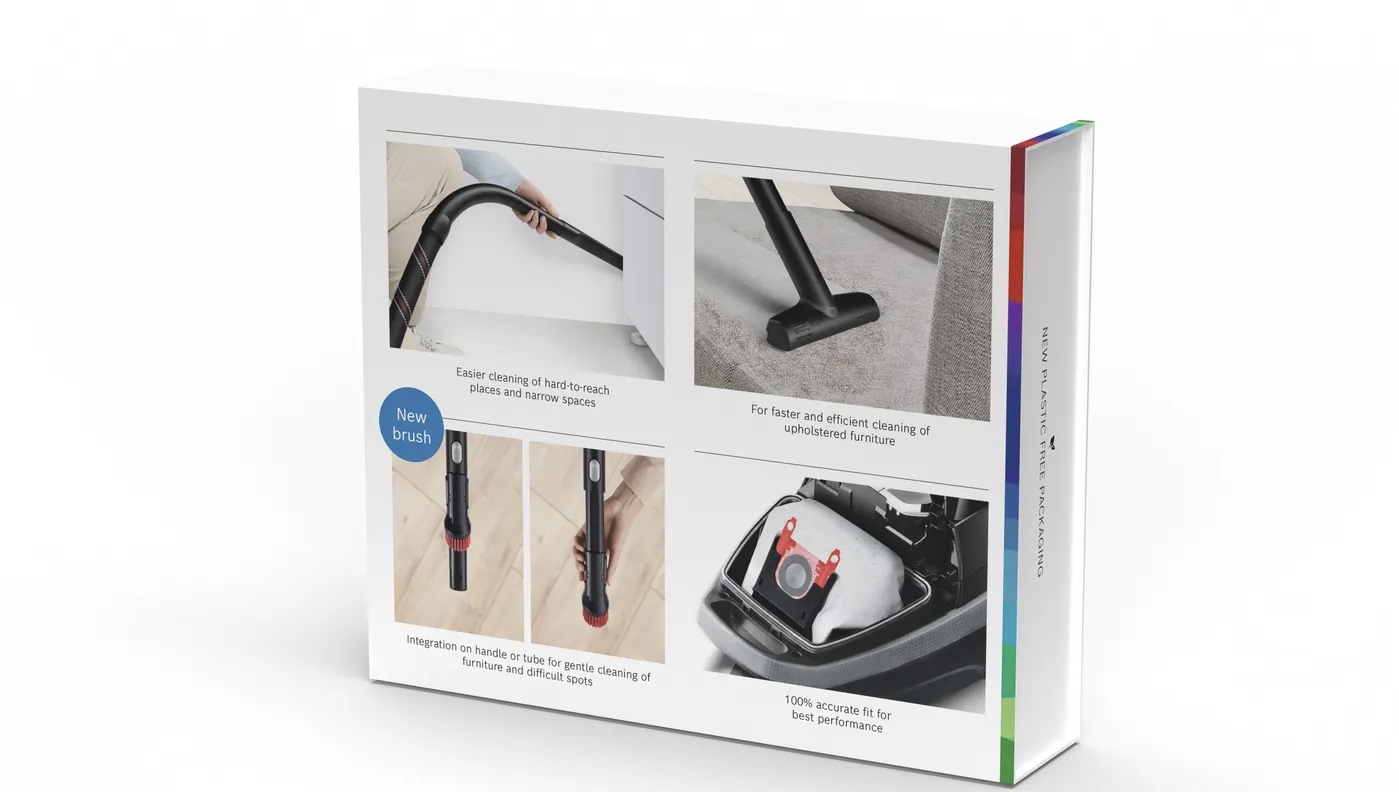 با لوازم جانبی حرفه ای مانند نازل شکاف بسیار بلند، نازل اثاثه یا لوازم داخلی XXL و برس مبلمان، نقاطی را که به سختی قابل دسترسی هستند به راحتی تمیز کنید. علاوه بر نازل ها، 4 کیسه گرد و غبار داخل جعبه لوازم جانبی قرار دارد. کیفی که برای نگه داری لوازم جانبی طراحی شده بسیار کارآمد می باشد.(برس های مخصوص بدون صدا و با قابلیت جابجایی آسان SilentClean Premium با زبانه قفل شونده برای بهترین کارایی تمیزکنندگی لوازم جانبی حرفه ای در یک کیف: ست با نازل شکاف بسیار بلند، نازل اثاثه یا لوازم داخلی بسیار عریض و برس مبلمان دستی، 4 کیسه گرد و غبار)