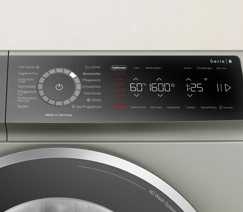 تنوع این حجم از برنامه شستشو به شما این امکان را میدهد که لباسهای خود را به بهترین شکل بشویید. استفاده از چرخه اشتباه میتواند منجر به آسیب دیدن لباسها و آسیب به ماشین لباسشویی شما شود. اگر وسایلی دارید که باید با دست شسته شود بهتر که چرخه شستشو دستی Hand Wash را انتخاب کنید. برای شستن لباسهای پشمی خود میتوانید از برنامه Wool استفاده نمایید تا با درجه حرارت مناسب شستشو داده شود این قضیه نه تنها مانع از آسیب دیدن الیاف لباس میشود بلکه با درجه تمیزی بالا در اختیار شما قرار خواهد داد. لباسهایی که ظریف هستند و بافت حساسی دارند را میتوانید با برنامه Delicates (Fein/Seide) شستشو دهید. اگر مطمئن نیستید که از کدام حالت استفاده کنید، حالت خودکار (Automatic) میتواند مفید باشد. این چرخه قابلیت تعیین سطح کثیفی البسه و انتخاب تنظیمات بهینه را دارد. چرخه خودکار از پارامترهایی مانند سطح آب، دما و مدت زمان برای تعیین بهترین چرخه شستشو برای آن بار خاص استفاده میکند. برای لباسهای نخی و کتان برنامه Cottons (Baumwoll) مناسب میباشد.