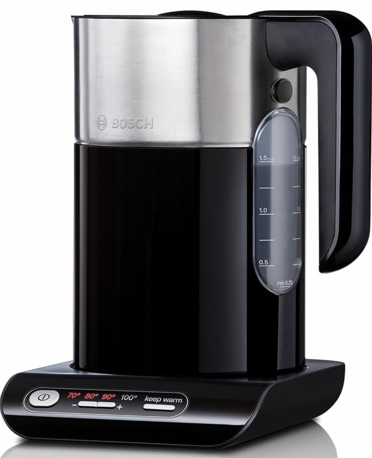 این کتری با برخورداری از توان مصرفی 2400 وات و همچنین سیستم گرمایشی المنت حرارتی مخفی قادر است عملیات جوش آوردن آب را در سریعترین زمان و به بهترین شکل ممکن به انجام برساند. ظرفیت کتری برقی بوش مدل TWK8613P به میزان 1.7 لیتر بوده که دارای محفظه نشانگر میزان سطح آب است؛ بنابراین به راحتی میتوانید میزان آب ورودی و یا حتی آب باقیمانده در حین انجام فرایند را مشاهده کنید.