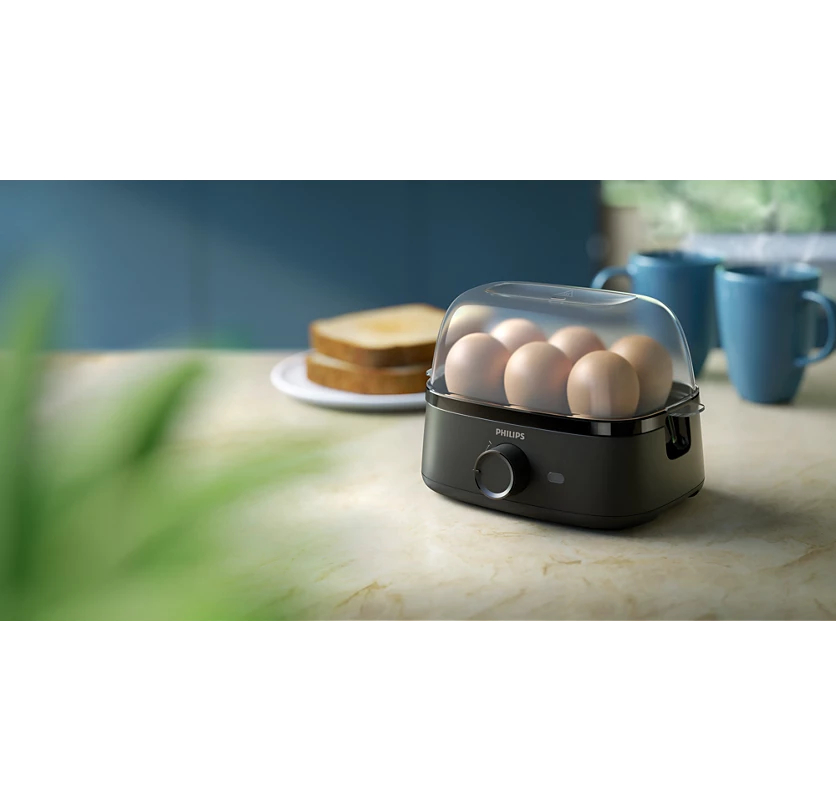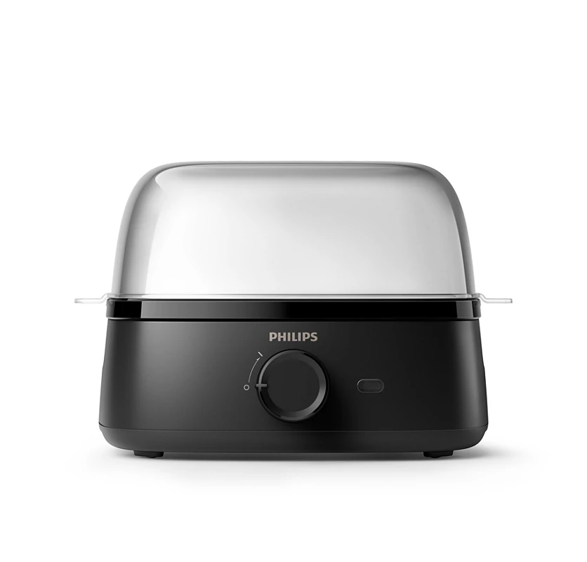 دستگاه تخم مرغ پز فیلیپس یک محصول جمع و جور و کاربردی با توان مطلوب 400W مناسب برای آب پز کردن و نمیرو کردن تخم مرغ در زمان کوتاه است. این محصول بوسیله افزایش دمای آب درون مخزن دستگاه و ایجاد یک فضای محبوس گرما – بخار، تخم مرغ را در زمان کوتاه به نیمرو و یا آب پز تبدیل میکند. در حالت نیمرو دستگاه فضای مناسب برای 3 عدد تخم مرغ را دارد و برای حالت آب پز تا 6 عدد میتوان قرار داد.