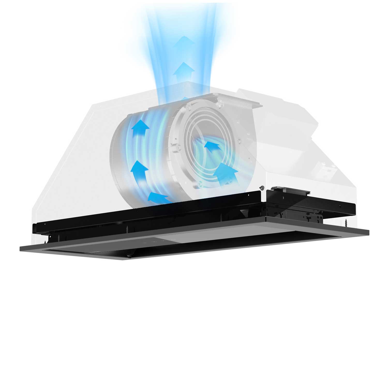 هود H۷۰۱BN از نوع مخفی است، یعنی داخل کابینت نصب میشود و بدون اشغال فضای اضافی، به صورت کاملاً یکپارچه با طراحی آشپزخانه شما هماهنگ خواهد شد. این طراحی مدرن باعث میشود که آشپزخانهای شیک، منظم و بدون المانهای اضافه داشته باشید. ترکیب پنل شیشهای مشکی با فریم فلزی، جلوهای لوکس به این هود بخشیده است، که علاوه بر زیبایی، مقاومت بالایی در برابر حرارت و رطوبت دارد.