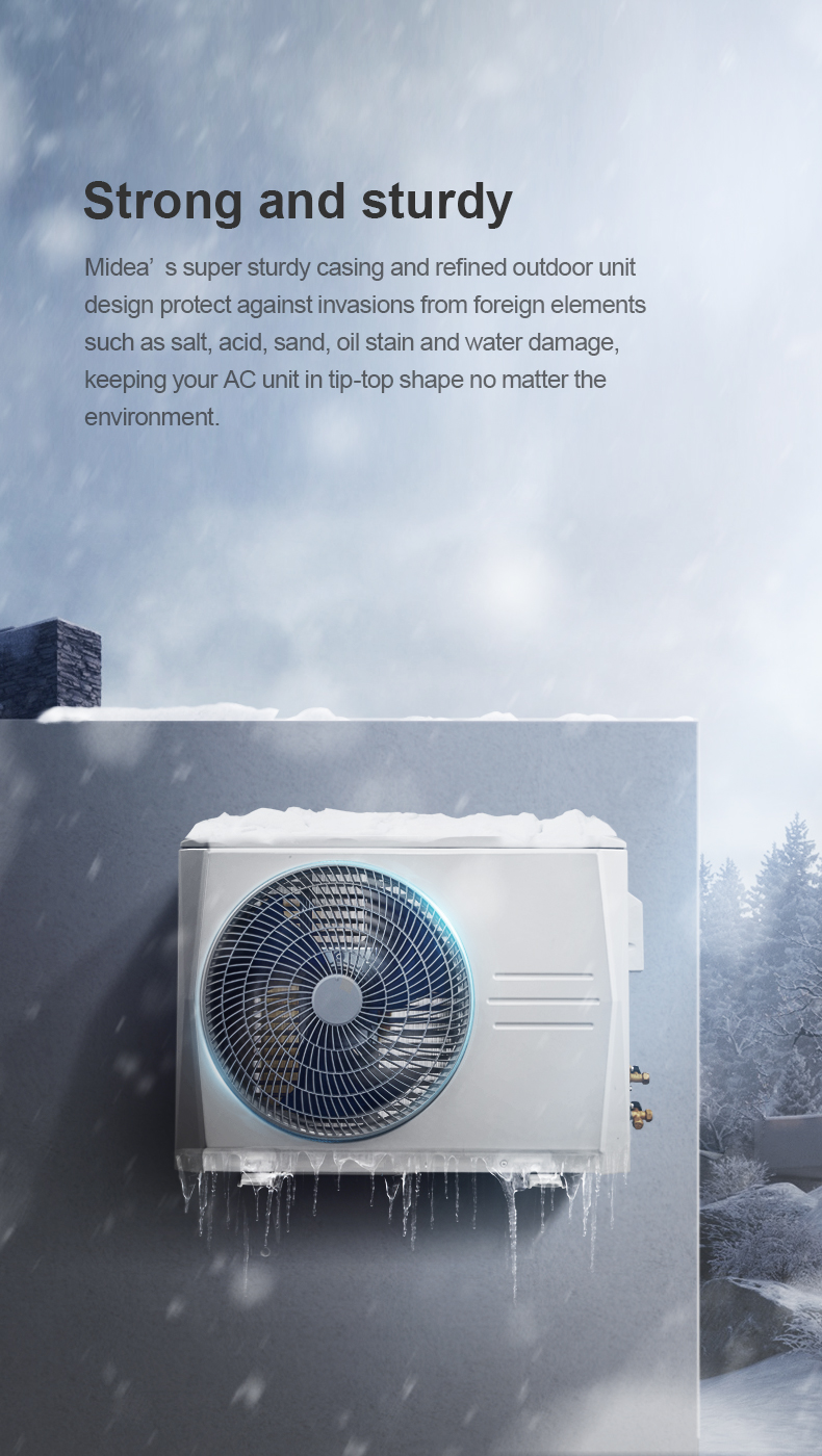 طراحی ظاهری کولر گازی میدیا 12000 اینورتر مدل XTREME MSAG-12HRFN1 با رنگ سفید براق و خطوط ساده، جلوهای مدرن و شیک به محیط میبخشد. سیستم پرتاب باد چهار جهته این دستگاه، توزیع یکنواخت هوا را در سراسر فضا ممکن میسازد و به افزایش راحتی کاربران کمک میکند. همچنین، این کولر گازی با قابلیت کارکرد در محدوده دمایی T3، برای استفاده در مناطق گرمسیری و حارهای مناسب است.