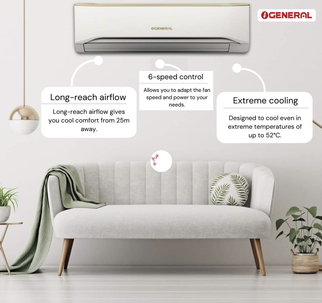 کولر گازی اجنرال مدل ASGA30FETA همراه با کمپرسور قدرتمند و سایر امکانات و ویژگی هایی که دارد توانسته برچسب مصرف انرژی خوبی را بدست بیاورد. این دستگاه دارای ریموت کنترل بوده که امکان استفاده از دستگاه را برای کاربر راحت تر میکند. اجنرال با بکار گیری فیلتراسیون کامل در این کولرگازی توانسته ریزگرد ها و آلاینده هایی که در محیط وجود دارند را به راحتی جذب کرده و آنها را به طور کامل از بین ببرد و این امکان را به کولرگازی داده تا بتواند هوای کاملا تمیز و تازه ای را در اختیار کاربران قرار دهد.