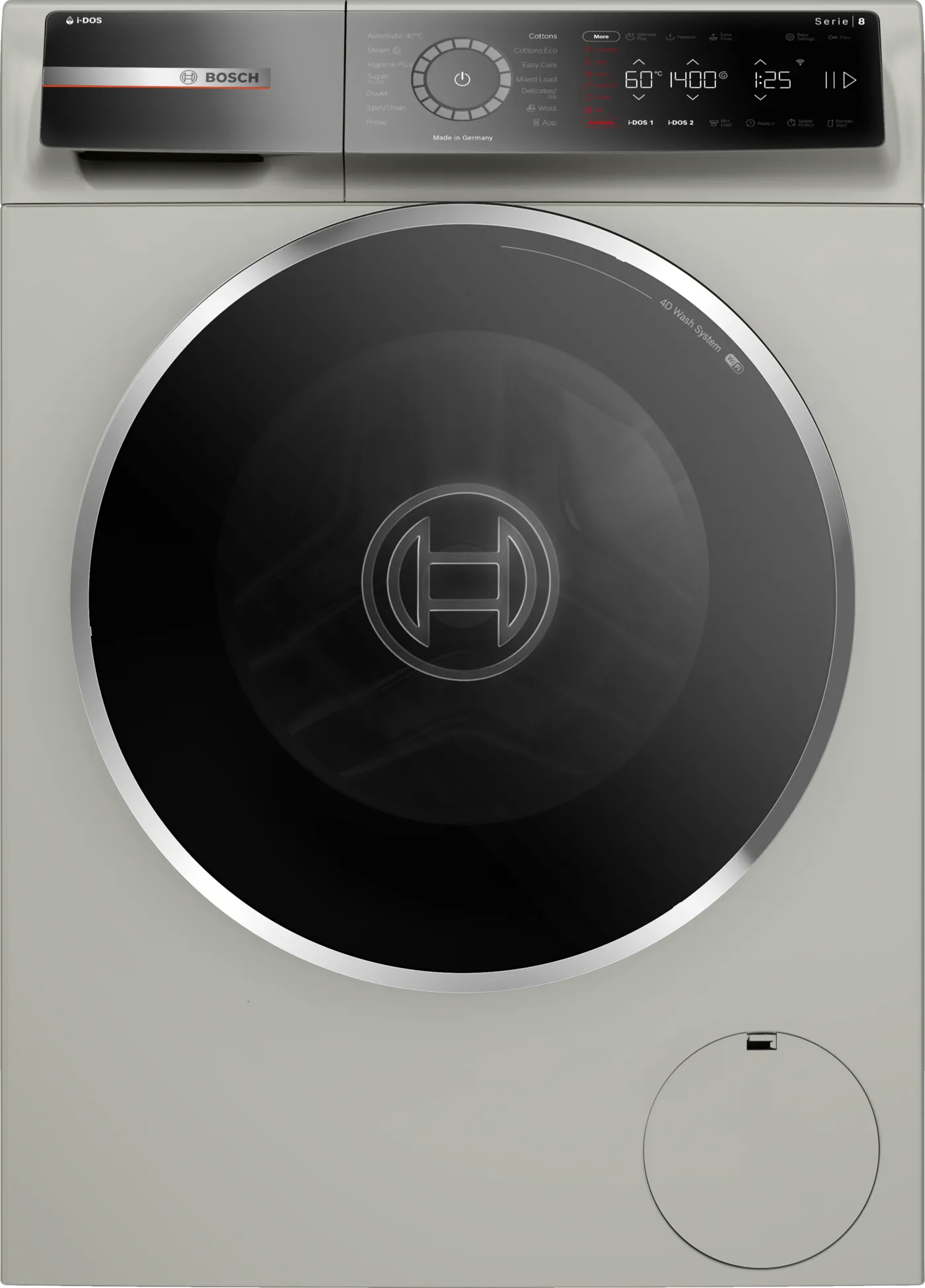 ماشین لباسشویی بوش سری 8 ساخت آلمان مدل WGB2560XGC مجهز به حداکثر سرعت چرخش موتور یعنی 1600 دور در دقیقه با ظرفیت 10 کیلوگرم است و با توجه به برنامه هایی که دارد می توانید شسشتشویی بی نقص و عالی را تجربه کنید. این دستگاه دارای بدنه ای به رنگ نقره ای اینوکس با پنلی لمسی می باشد.