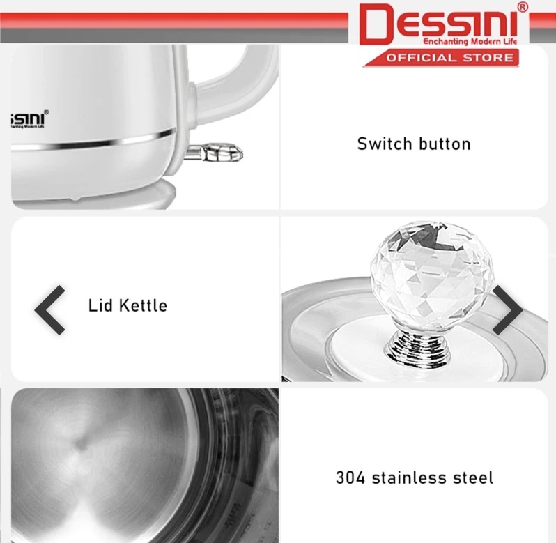 کتری برقی دسینی محصول جدید این شرکت می باشد که با طراحی شیک و مدرن توانسته جز پر فروش ترین کتری برقی های موجود در بازار باشد ،کتری برقی دسینی با توان 2200 وات و مصرف انرژی A یک محصول کاربردی و با کیفیت از این برند میباشد.دارای قطع کن خودکار دقیق ، با قابلیت چرخش 360 درجه و دارای چراغ نشانگر با ظرفیت 1.7لیتر انتخاب بسیار خوبی می باشد.