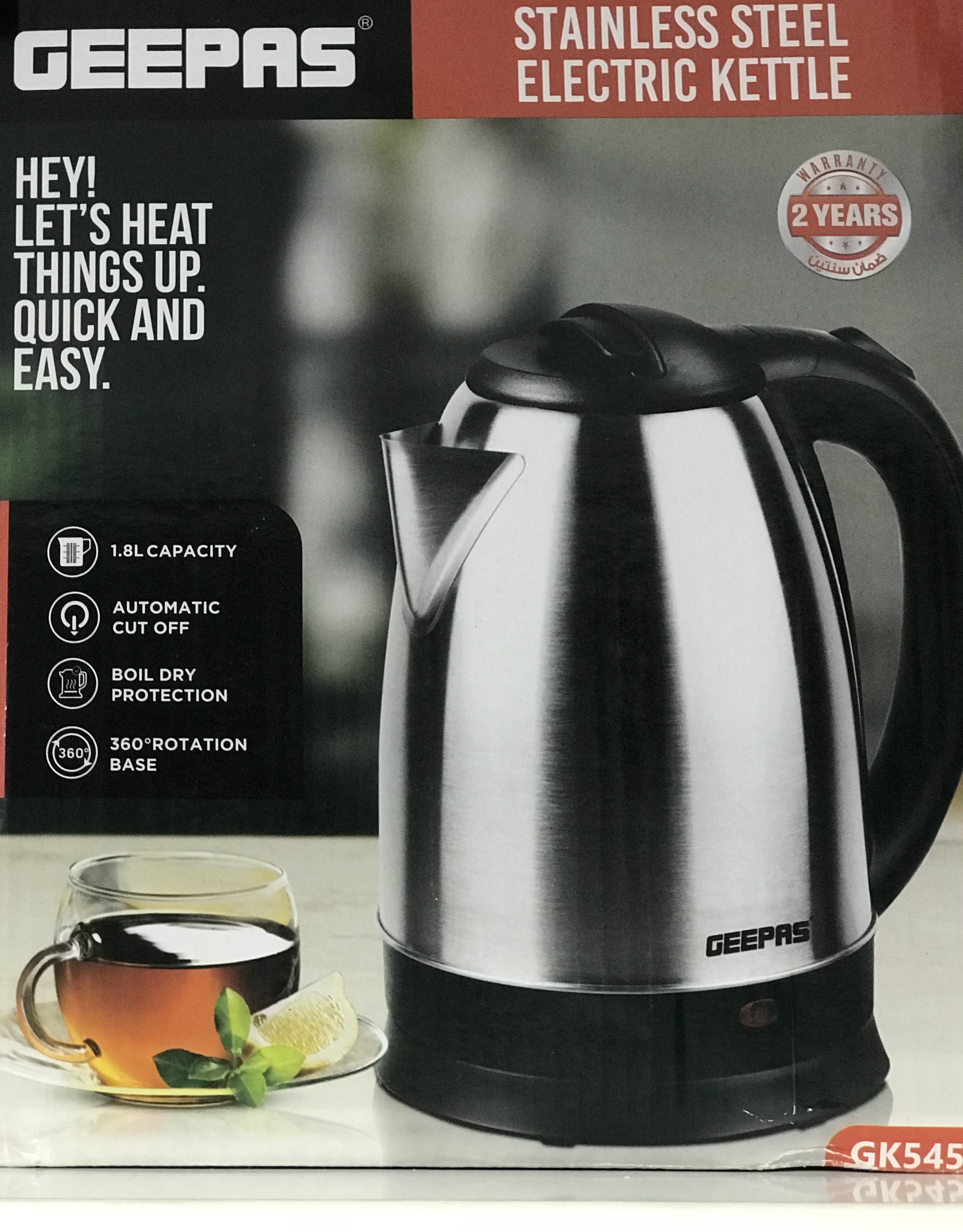 کتری برقی جیپاس مدل GK5454B با صفحه گرد خود، قادر به چرخش 360 درجه در هر جهت است.ظرفیت 1.8 لیتری با بدنه استیل ضد زنگ وخاموشی خودکار دستگاه پس از جوش آمدن آب زیبایی و کارآیی راحت را برای شما به ارمغان می آورد .این وسیله که امروزه در هر خانه و محل کاری نیاز و ضروری است، یکی از پرطرفدارترین و پرمصرفترین ابزارها برای تهیه آب جوش فوری به شمار میآید.
