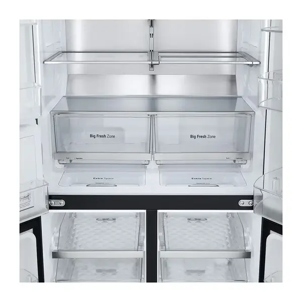 یخچال فریزر ساید باید ساید ال جی X24 همانند طراحی بیرونی، طراحی داخلی زیبا و چشمگیری را هم داشته، یخ ریز و آبریز اتوماتیک همراه با نمایشگر، زیبایی بیشتری را جدا از کارایی به یخچال بخشیده است. همیشه و در همه حال آبی سرد و گوارا را بچشید و نیازی نیست زمانی را صرف درست کردن یخهای دستی کنید. از قابلیتهای داخلی که سبب شده تا مواد غذایی سالمتر باقی بمانند میتوان به جعبه میوه و سبزیجات اشاره کرده؛ هم چنین قابلیت هوای چندگانه Multi Air-flow که به لطف آن هوایی سرد و خنک در یخچال جریان مییابد.