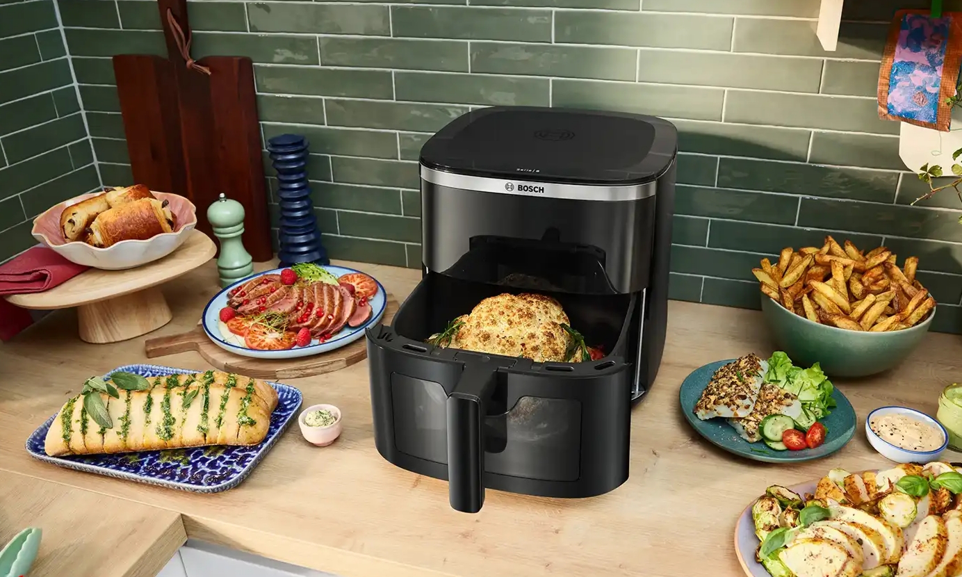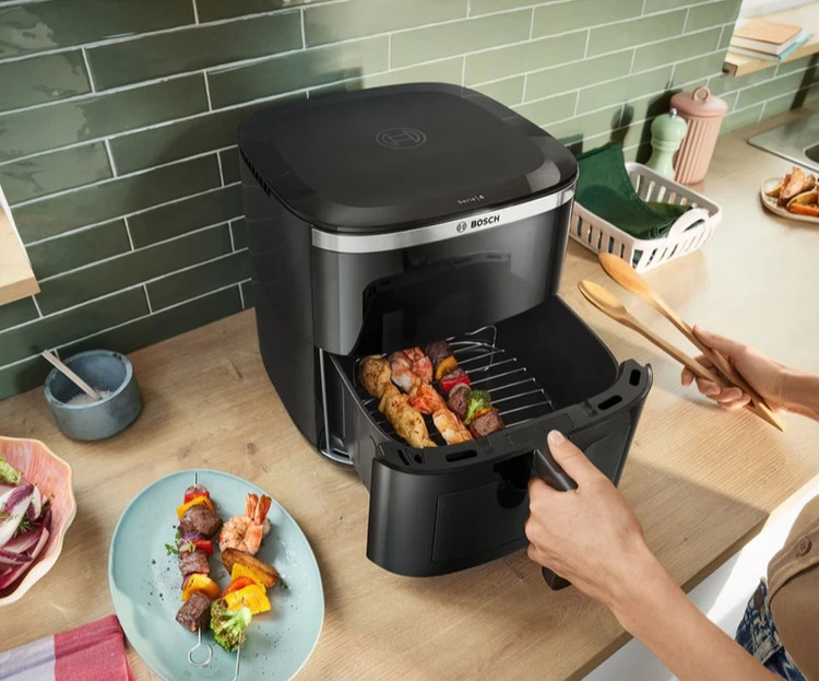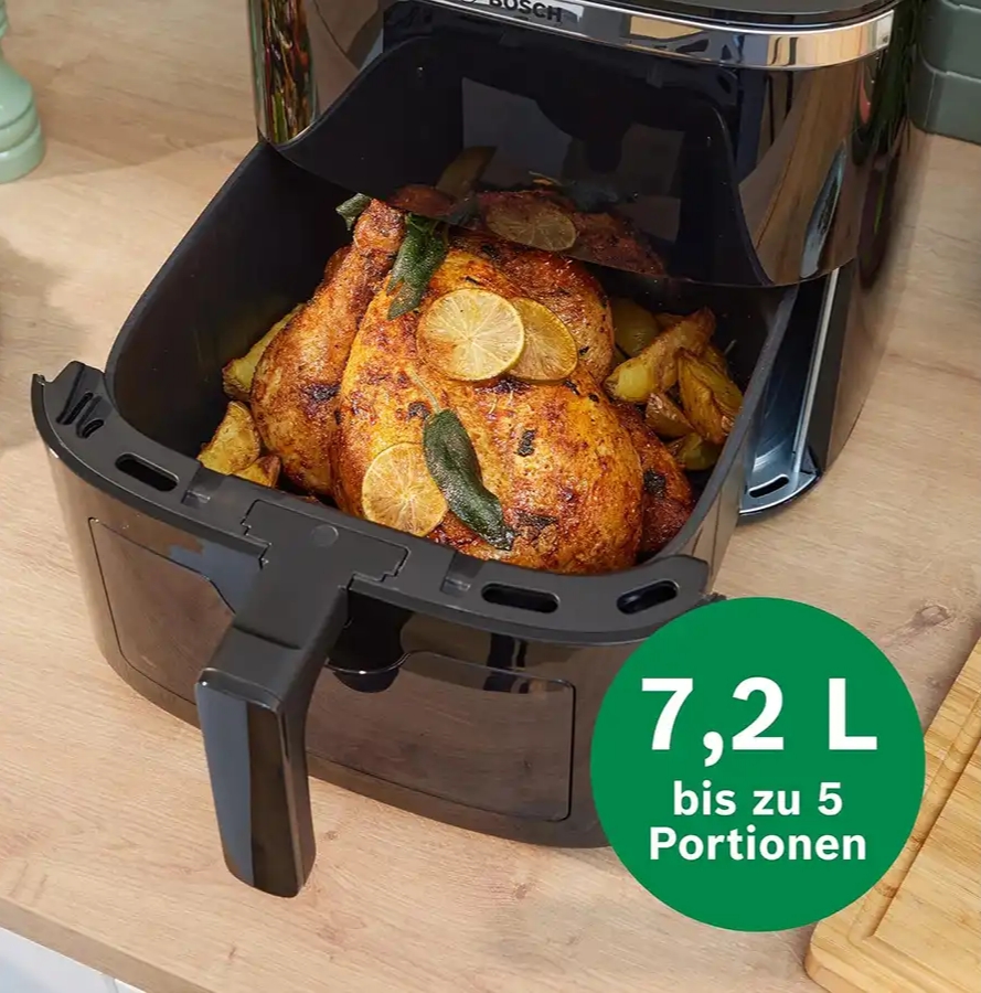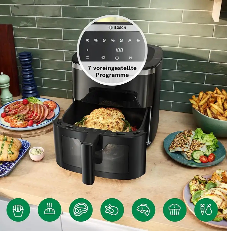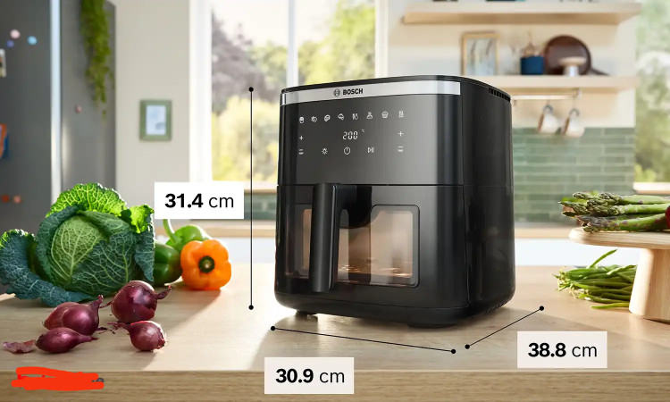 سرخ کن بوش به رنگ مشکی با طراحی شیک وکاربرپسند جلوه ویژه ای به دکوراسیون آشپزخانه شما میبخشد.در قسمت جلوی بدنه یک صفحه نمایشگرLEDجذاب با دکمه های لمسی طراحی شده که تنظیمات دستگاه را آسان کرده وزیبایی آن رانیز افزوده است.همچنین به لطف طراحی پنجره روی درب کشویی میتوانید فرآیند طبخ غذا را مشاهده کنید.