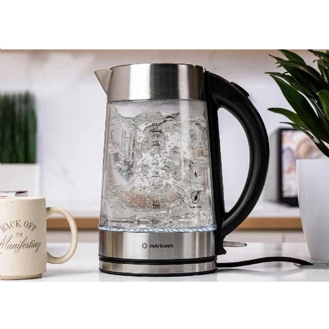 ظرفیت 1.7 لیتری کتری برقی نوتریکوک GK100 برای زمانی که به چندین فنجان چای ,قهوه یا آب جوش به طور همزمان نیاز دارید بسیار ایده آل میبشد .نشانگر نور سفید که هنگام جوشیدن روشن می شود وبا گرم شدن آب ,یه نشان بصری مدرن به شما می دهد.