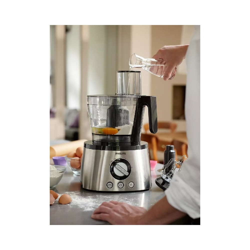 ظرف خردکن: ظرفیت ظرف خردکن این دستگاه زیاد و حدود 3.4 لیتر است و امکان تهیهی موادغذایی زیادی را در یک بار استفاده میسر میسازد؛ برای مثال، تهیهی سوپ برای 7 نفر، همزدن 7 سفیدهی تخممرغ و تهیهی 1.7 کیلوگرم خمیر را امکانپذیر میکند. ورودی عریض ظرف خردکن این قابلیت را ایجاد میکند که همه گونه مواد و میوه و سبزیجات بدون برش وارد ظرف خردکن شوند.