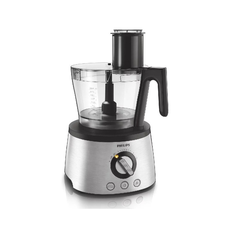 غذاساز «فیلیپس» (Philips) مدل «HR7778» دستگایی باکیفیت و پرکاربرد است. با این دستگاه میتوانید در خانه نان و کیک بپزید، انواع موادغذایی را خرد یا رنده کرده و انواع نوشیدنیها را تهیه کنید. بدنهی این دستگاه از استیل ضدزنگ ساخته شده است که عمر طولانی دستگاه را تضمین میکند. با کمک دکمهی چرخشی روی دستگاه میتوان سرعت چرخش موتور را تا 12 درجه تغییر داد و در مواجهه با مواد سخت و سفت، با چرخاندن دکمه روی حالت پالس، از حداکثر توان موتور برای چند لحظه استفاده کرد. این دکمهی چرخشی، روکش کرومی دارد و سطح آن طوری طراحی شده است که هنگام کار از دست لیز نمیخورد. دکمههایی برای درستکردن خمیر، کرم و تهیهی نوشیدنی با یخ بهصورت پیشفرض طراحی شدهاند و در صورت فشردن هرکدام از این دکمهها، دستگاه بهصورت خودکار نوع عملکرد انتخابشده را با سرعت مناسب آن عملکرد برای رسیدن به بهترین نتیجه تنظیم میکند.